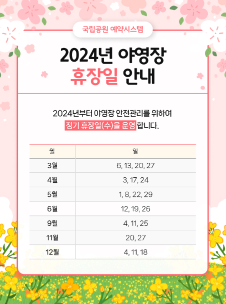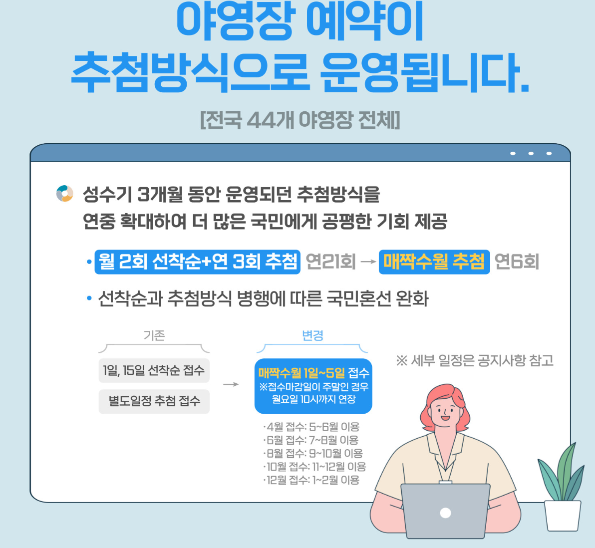 국립공원관리공단 예약통합시스템은 연중 상시로 운영되고 있습니다. 선착순 방식으로 진행되지만, 성수기에는 많은 기회를 주기 위해서 추첨 방식으로 전환되기도 합니다.
