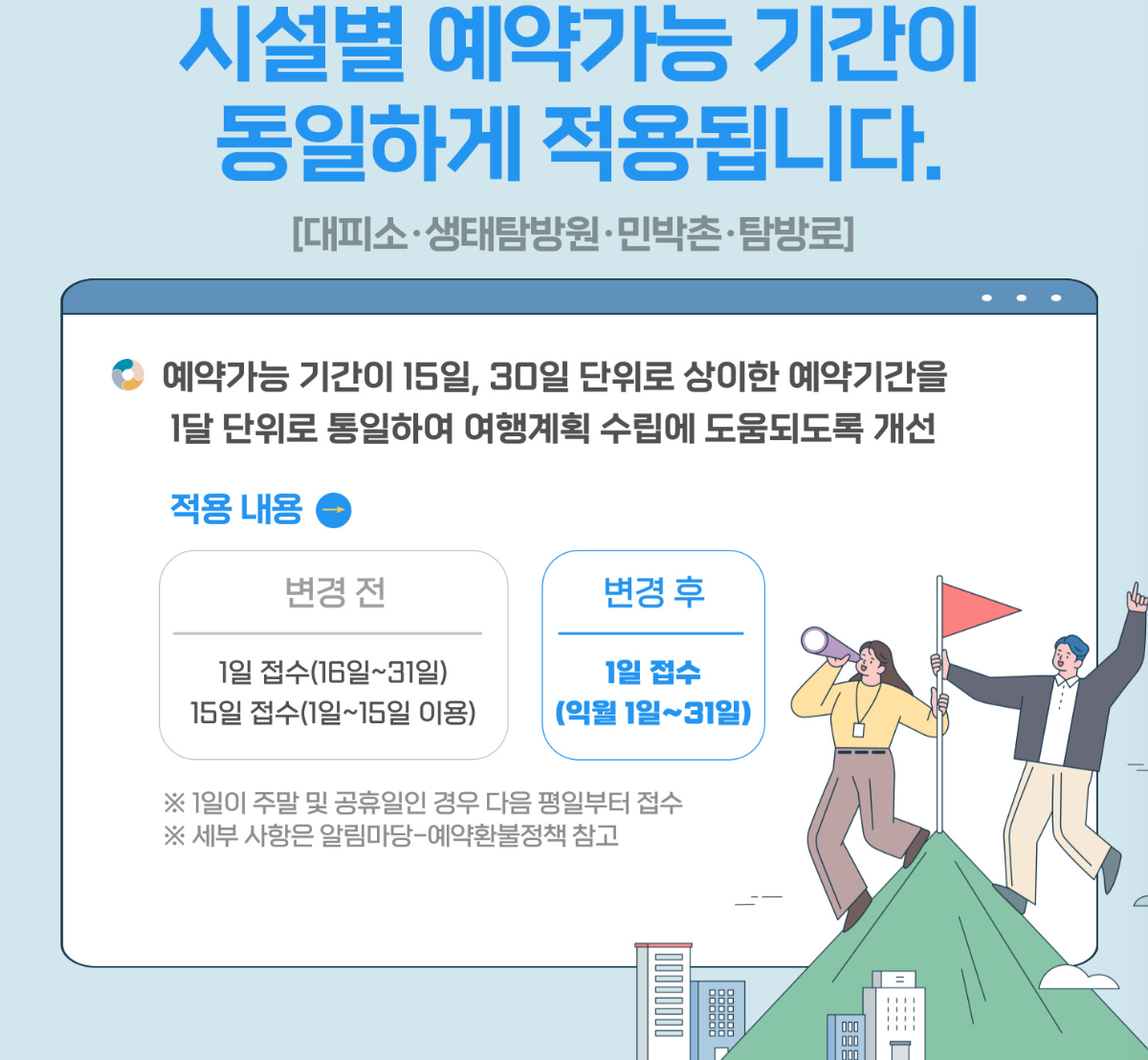 자연 속에서 편안하게 휴가를 즐기시려면 국립공원 사이트를 이용하시면 됩니다. 국립공원 내 시설 이용은 사전예약이 필수입니다. 오늘은 국립공원관리공단 예약통합시스템 캠핑장(야영장), 대피소, 민박촌, 탐방로 등 예약에 대해 안내드리겠습니다.
