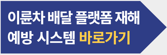 이륜차 배달 사고 예방 방법으로 안전보건공단에서 제공하는 [이륜차 배달 플랫폼 재해예방 시스템[이 있습니다. 사고 다발 지역에 접근할 때나 우천 시에는 경고 메시지가 음성으로 표출됩니다.