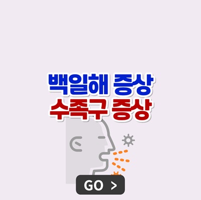 수족구 증상도 백일해 증상처럼 초기에는 발열, 목아픔(인후통), 기침, 몸살기, 식욕부진, 무력감 등 감기와 유사한 증상이 나타납니다. 수족구병은 발병 3일 후부터 가려움을 동반하는 수포(물집)가 입, 손, 발 등에 나타나는 것이 특징입니다. 입안 수포로 물을 마시지 못해 탈수 증세가 나타나기도 합니다.