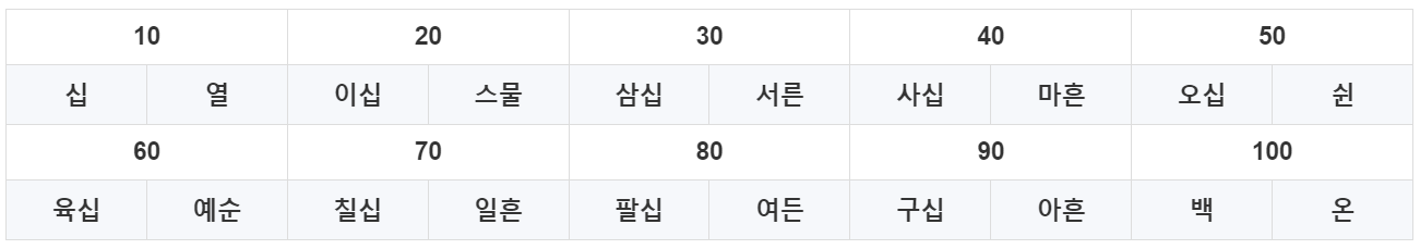 | 2자리 | 10 | 십 |