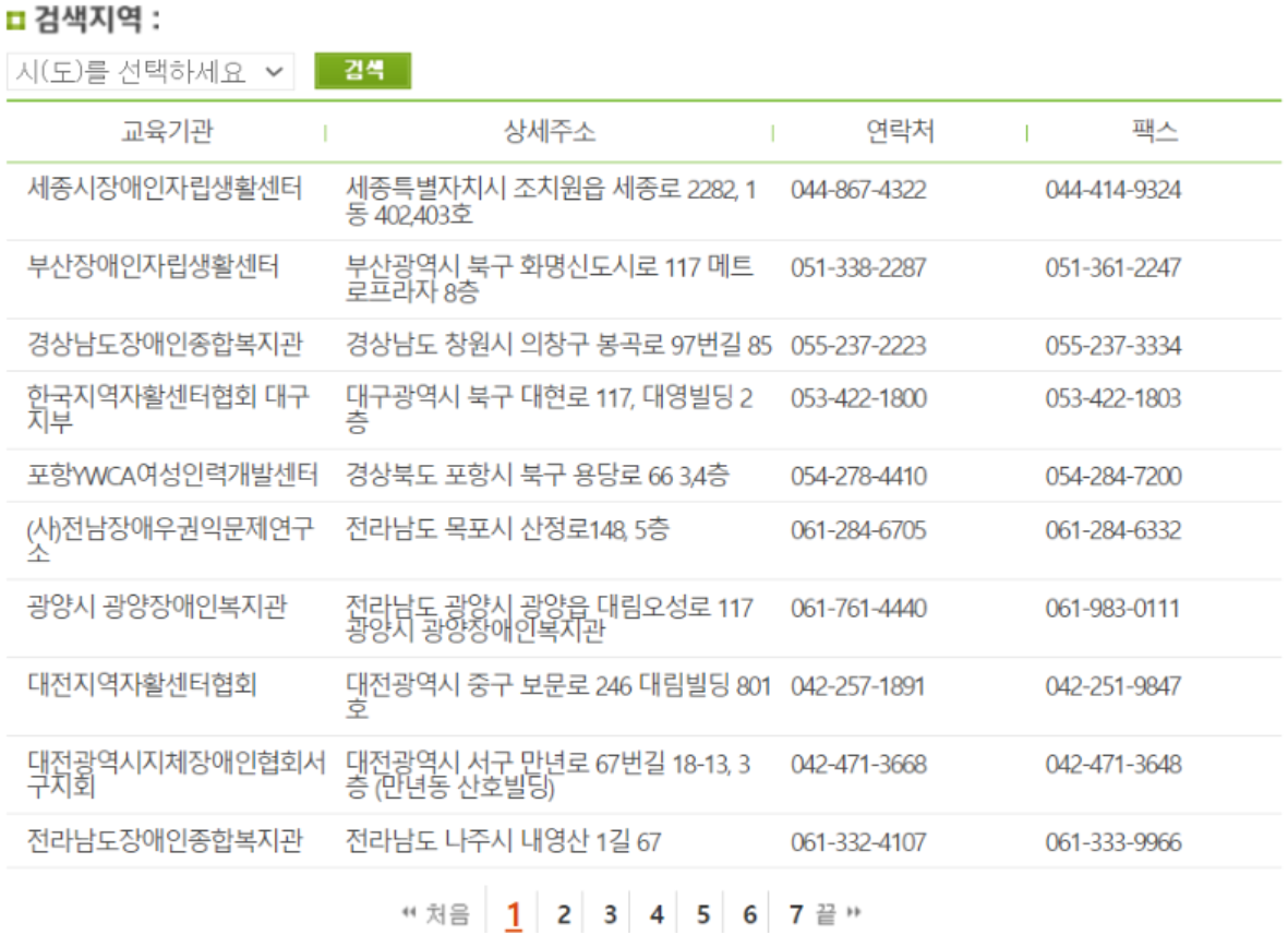 장애인 활동지원 홈페이지에 접속하면 장애인 활동지원사 교육기관을 지역별로 확인할 수 있습니다.