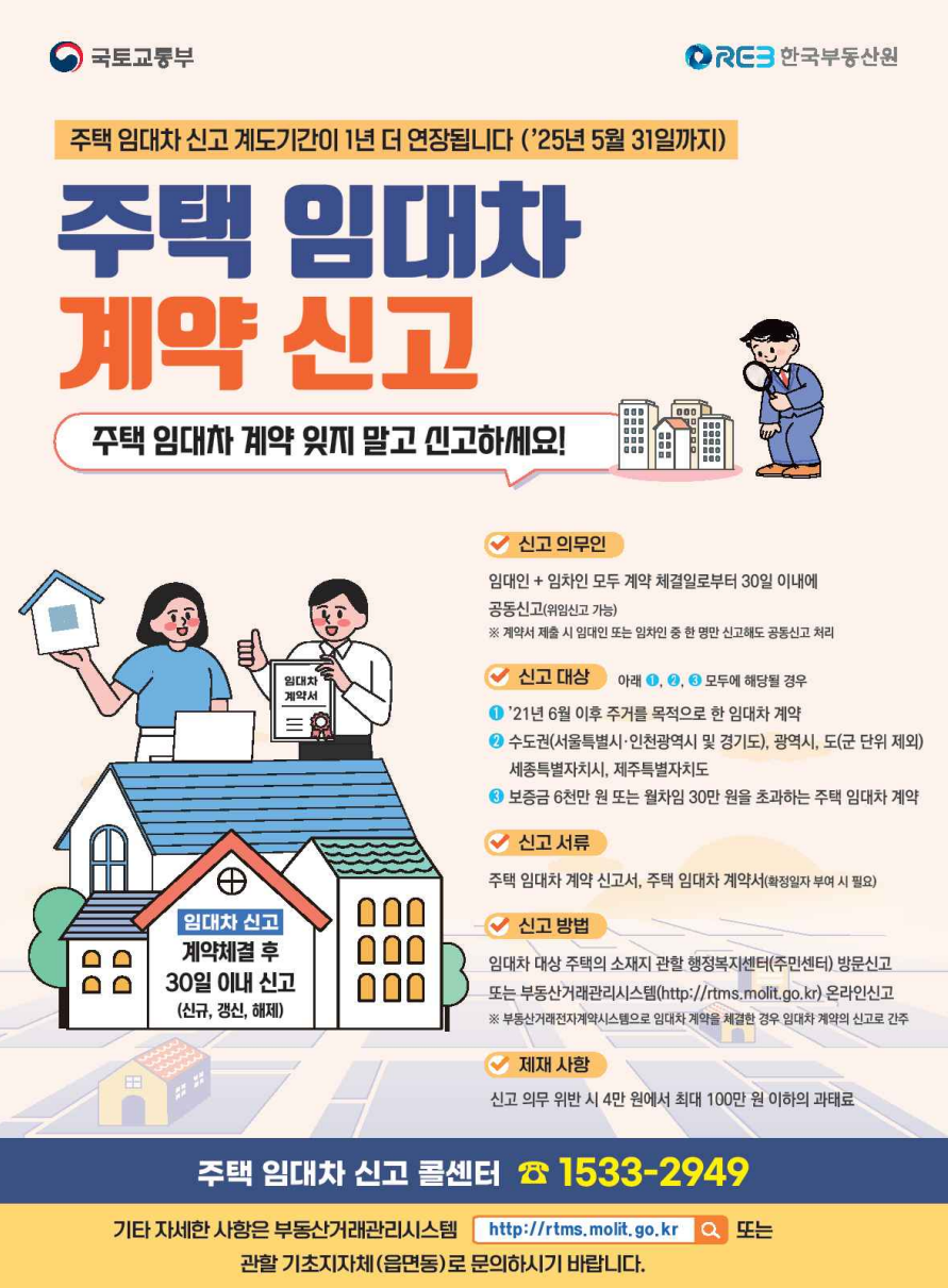 - 신고내용 : 임대인·임차인 인적사항, 임대목적물 정보, 계약내용 등