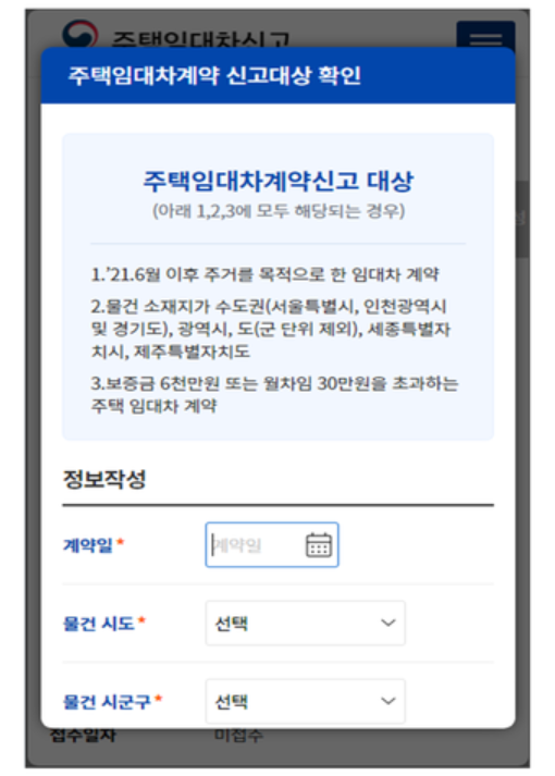 - 신고대상 : 보증금 6천만원 또는 (차임)월세 30만원 초과