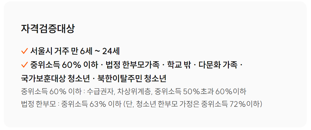 서울시에 거주하는 저소득층 학생이면서 만 6세에서 24세까지라면 가입이 가능합니다. 아래 내용처럼 자격 조건이 맞는지 확인후 가입하시기 바랍니다.