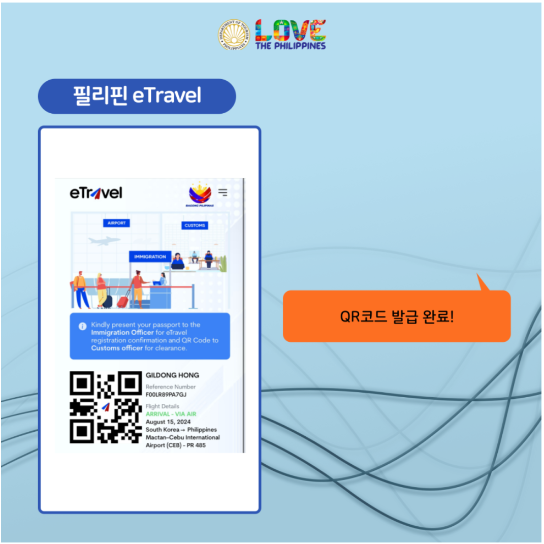 이상 모든 절차를 다 끝냈습니다. 이트래블 작성 후에 QR코드를 꼭 받아 이미지로 저장하시고 세관정보도 QR코드를 이미지로 저장하셔서 필리핀 도착해 입국할 때 보여주시면 됩니다.