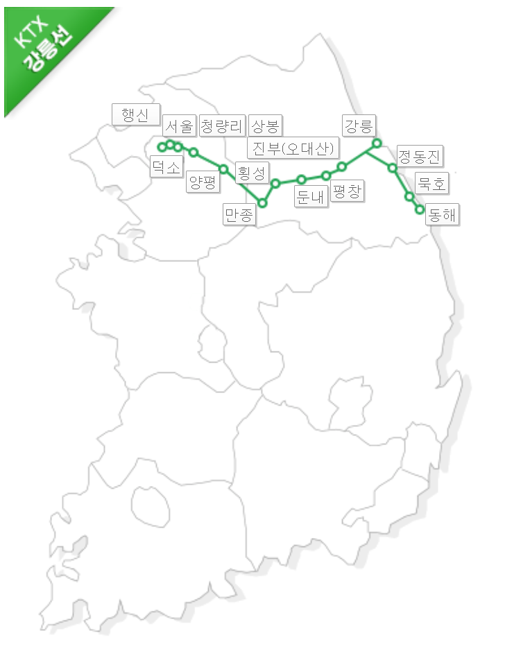 강릉선은 서울에서 동해까지 연결합니다. 서울에서 평창, 강릉, 정동진, 동해를 가시려면 강릉선으로 예매하시면 됩니다.
